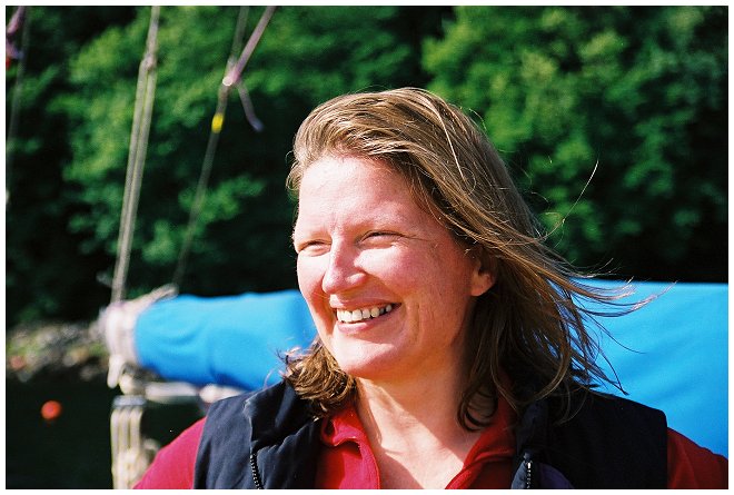 in breezy conditions. Glorious sunshine and a slightly squally breeze as we motorsailed the first stretch of the