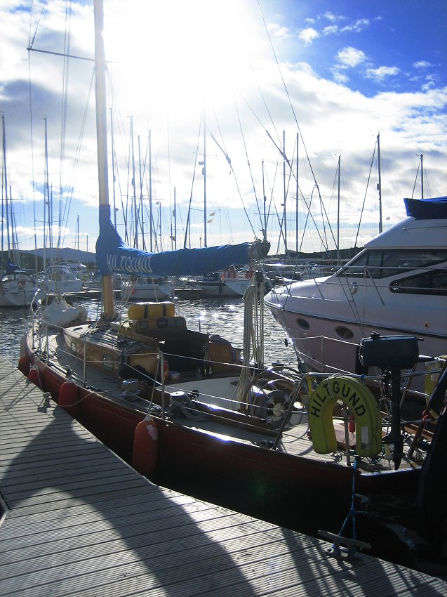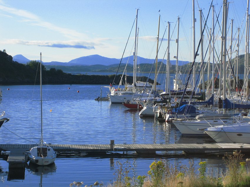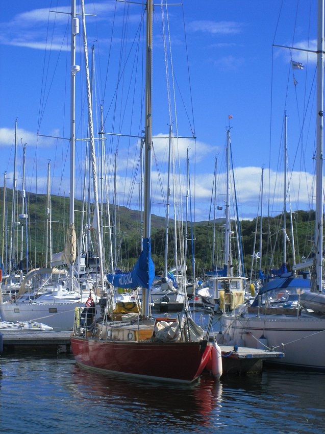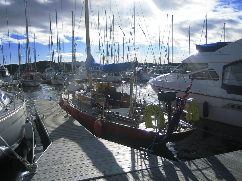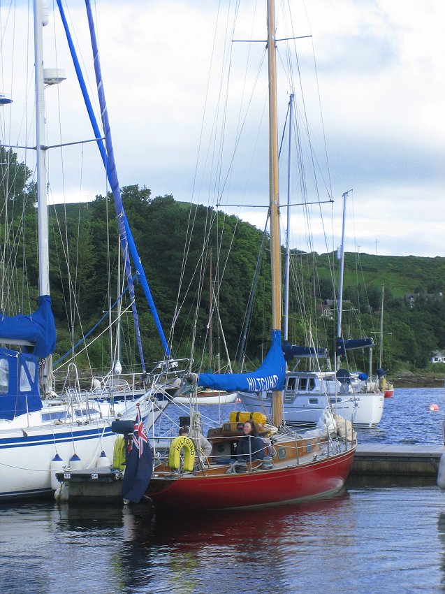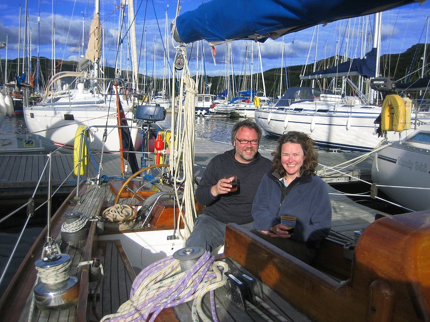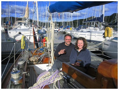 for supper with the Grays. Joined at the pub after supper by Al & Maeve. Saturday was a bit of a washout so we went for a drive, had beer at Crinan and ate too much. Happily, Al & Maeve were able to extend their weekend to take in Monday. Sadly JB couldn't so he pottered off after breakfast on Sunday into the rapidly improving weather. Hiltgund set off heading for Dorus Mor and points beyond..... |