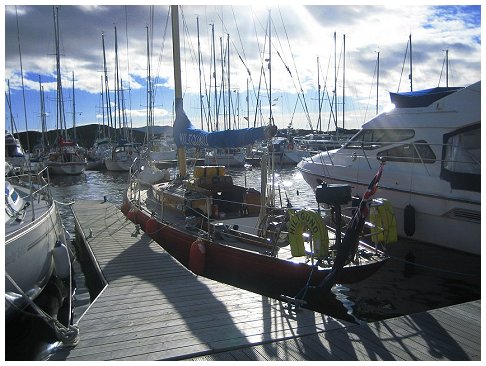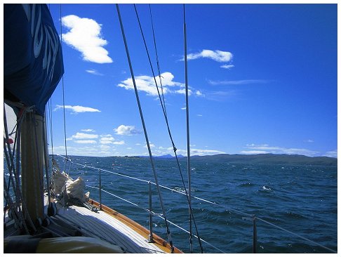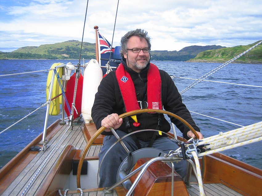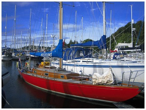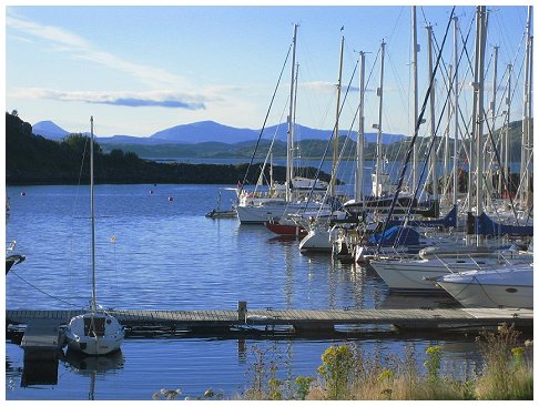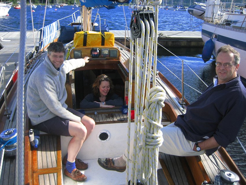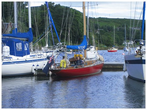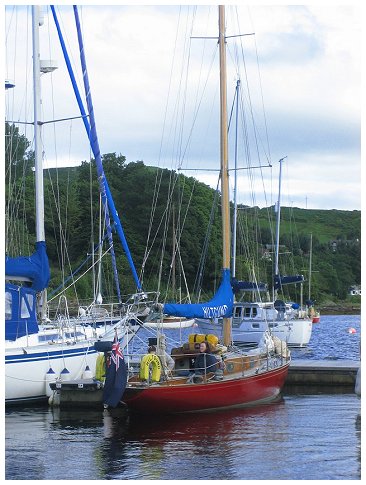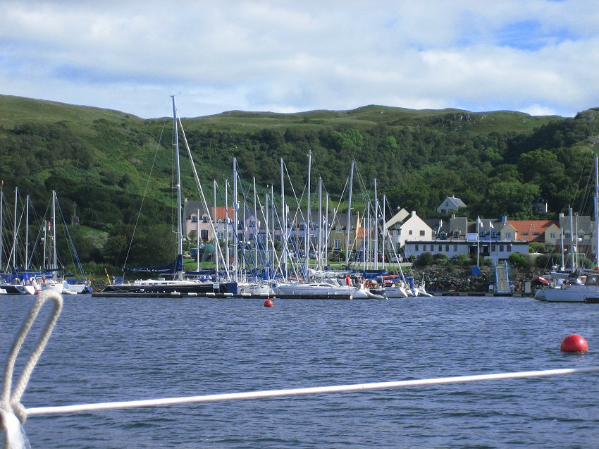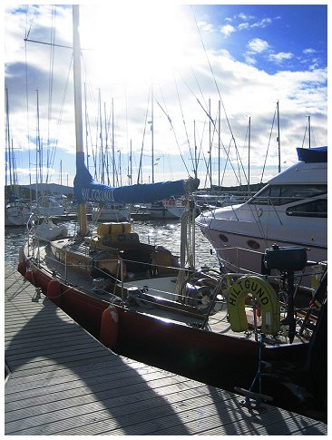 for supper with the Grays. Joined at the pub after supper by Al & Maeve. Saturday was a bit of a washout so we went for a drive, had beer at Crinan and ate too much. Happily, Al & Maeve were able to extend their weekend to take in Monday. Sadly JB couldn't so he pottered off after breakfast on Sunday into the rapidly improving weather. Hiltgund set off heading for Dorus Mor and points beyond..... |