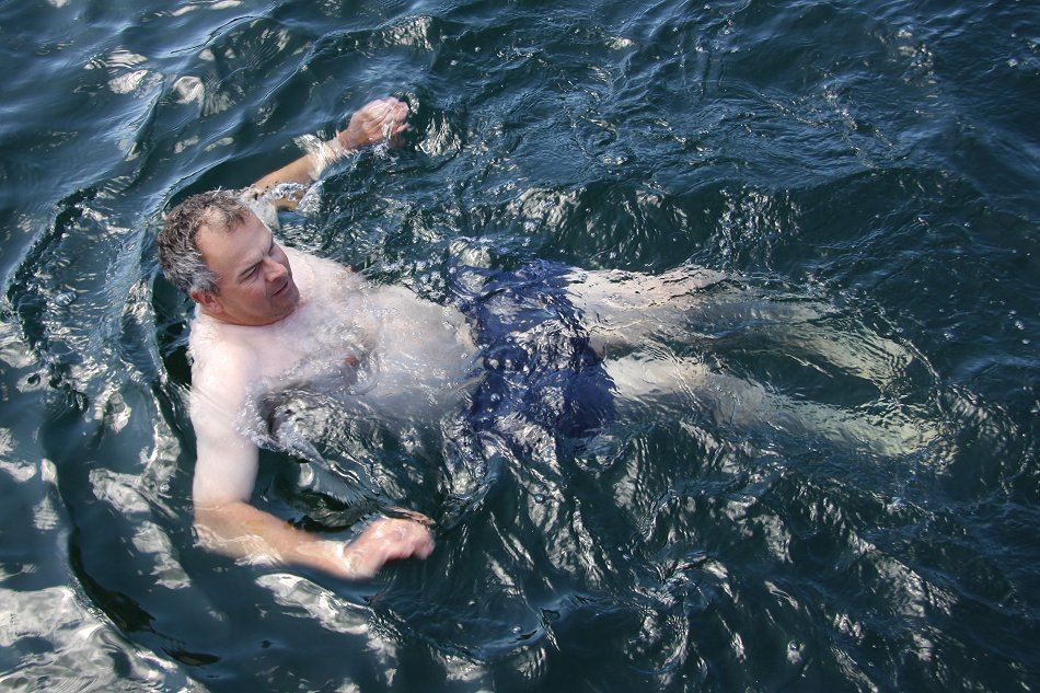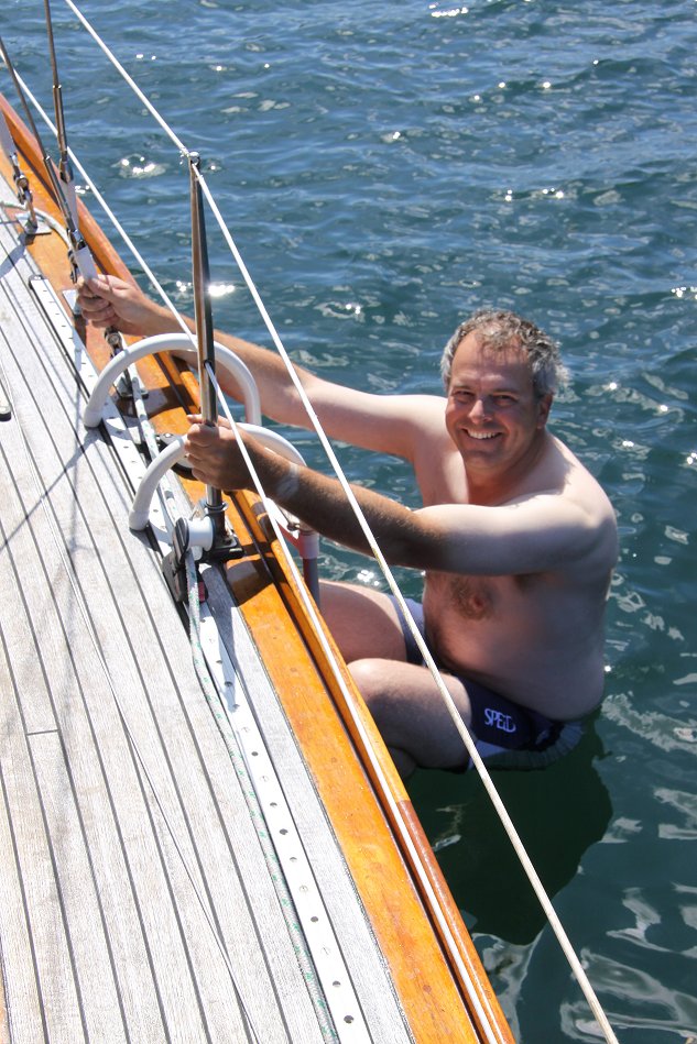 No showers at the Hotel, so time to get clean aboard. With the air temperature at about 30°C, the solar showers warmed up nicely - which was good as the sea felt VERY cold!!